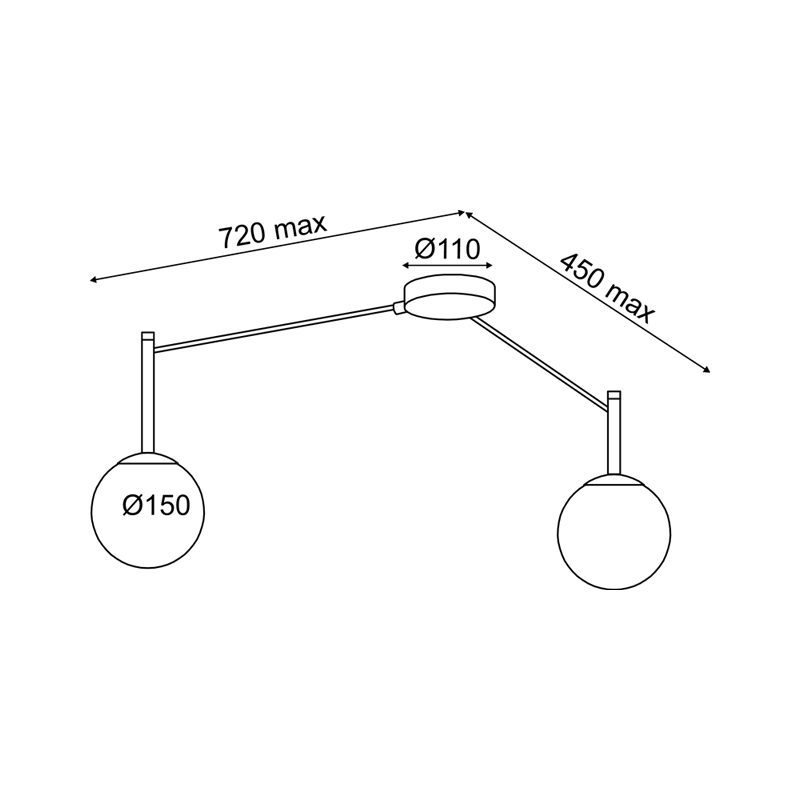^ΟΡΟΦΗΣ Φ/Σ 2xE14 TIRAMOLLA ΜΑΥΡΟ ΜΕΤ/ΚΟ + ΛΕΥΚΟ ΓΥΑΛΙ 72Χ42Χ32CM