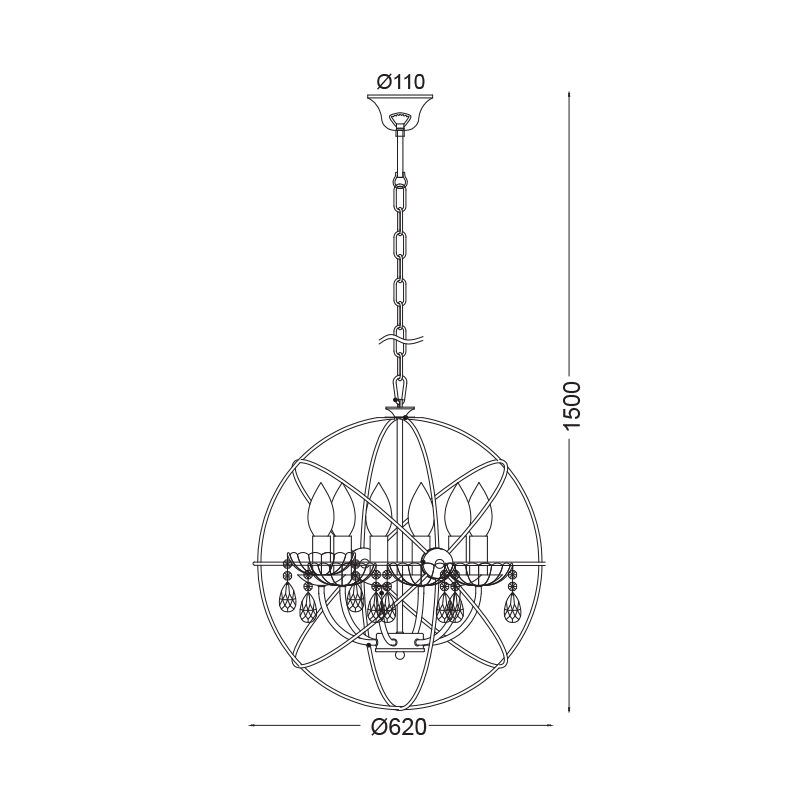 ΚΡΕΜΑΣΤΟ Φ/Σ 6ΧΕ14 ΜΕΤΑΛΛΙΚΟ ΝΙΚΕΛ ΜΑΤ+ΚΡΥΣΤΑΛΛΑ Φ60ΧΗ150CM CATANIA