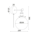 NETTO ΕΠΙΤΟΙΧΟ Φ/Σ 1ΧΕ27 ΜΑΥΡΟ ΜΕΤΑΛΛΟ+ΓΥΑΛΙ Φ20ΧΗ38CM TARO