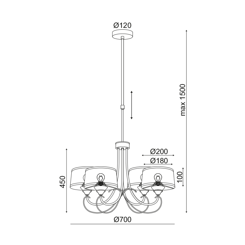 NETTO ΚΡΕΜΑΣΤΟ Φ/Σ 4ΧΕ27 ΜΕΤΑΛΛΙΚΟ ΚΑΦΕ+ΜΠΕΖ ΑΜΠΑΖΟΥΡ Φ62XH150CM POIROT