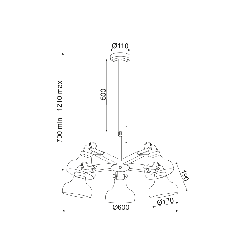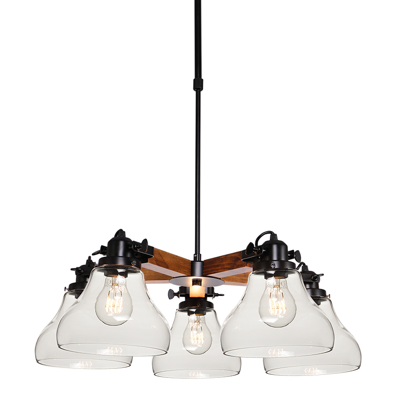 NETTO ΚΡΕΜΑΣΤΟ Φ/Σ 5ΧΕ27 ΜΕΤΑΛΛΙΚΟ+ΞΥΛΟ+ΓΥΑΛΙ Φ60ΧΗ100CM PARALIA
